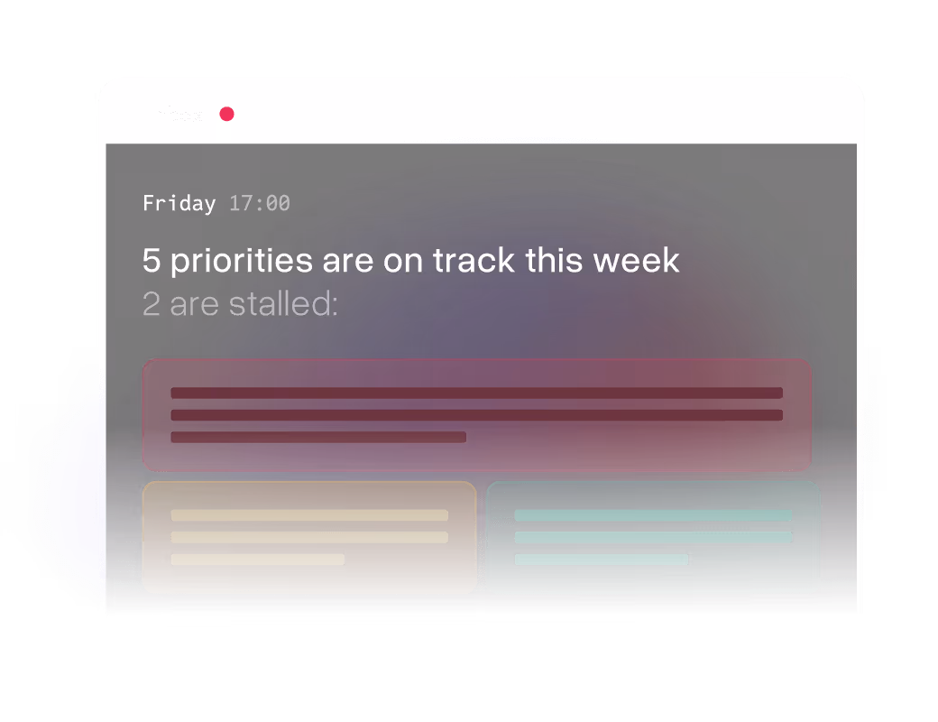 Your AI Chief of Staff that preps you for every meeting, keeps your team accountable & aligned, and helps you stay on top of key initiatives.