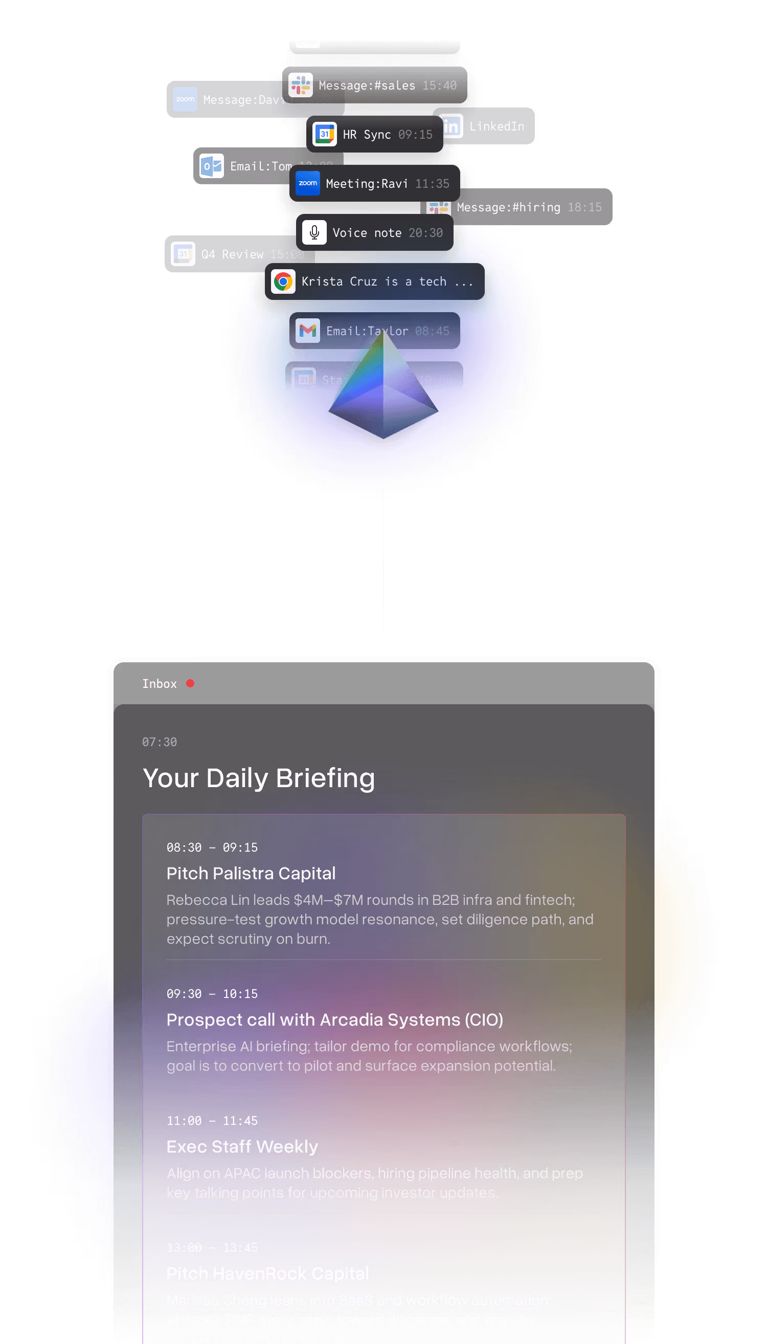 Ambient’s AI briefing agent scours a variety of internal and external data sources to help get you ready for your day, in the process saving you and your team hours of prep work.
